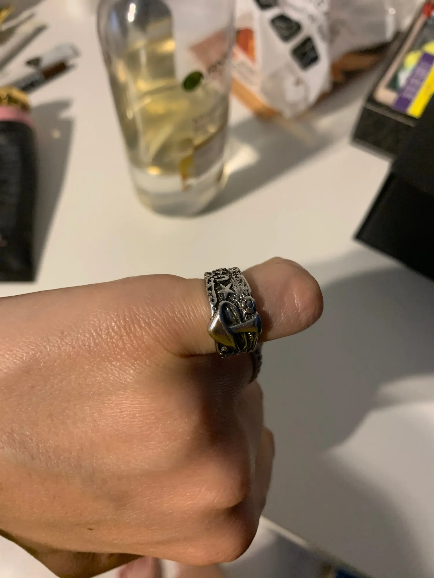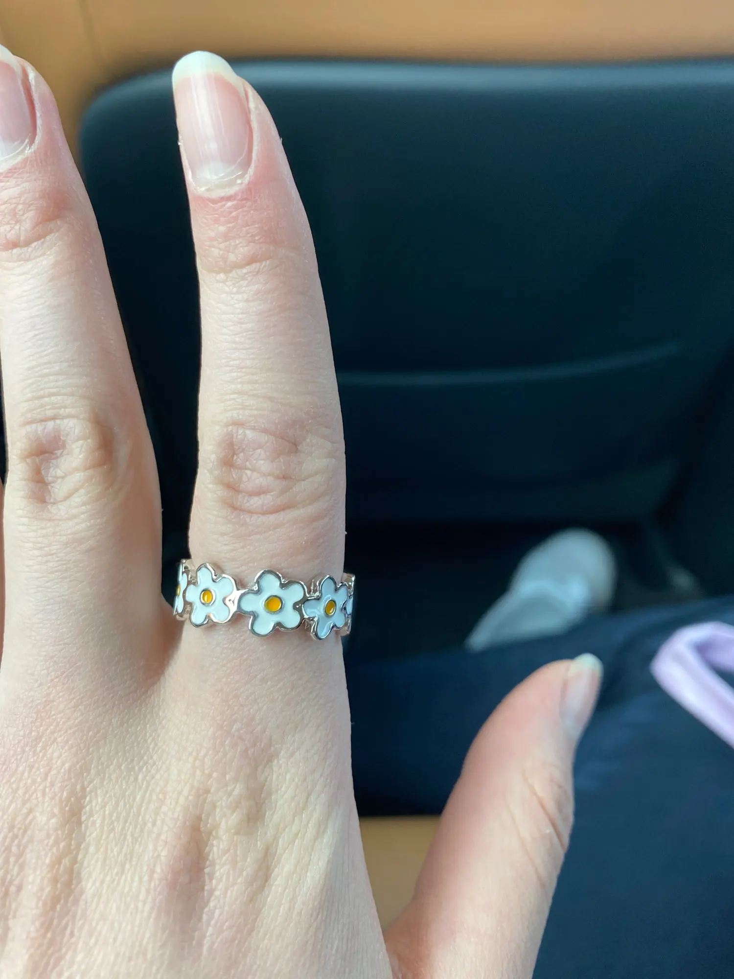 Не угадала с размером, еле влезает на безымянный, но кольцо мне нравится