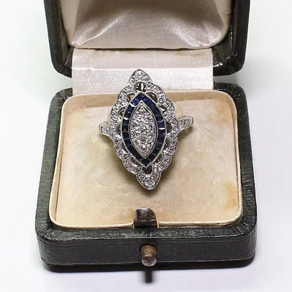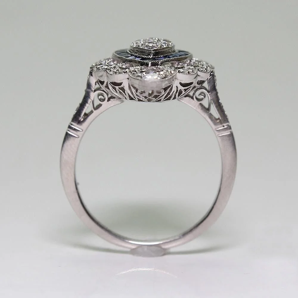 Серебряное кольцо с сапфиром и бриллиантами в античном стиле арт-деко