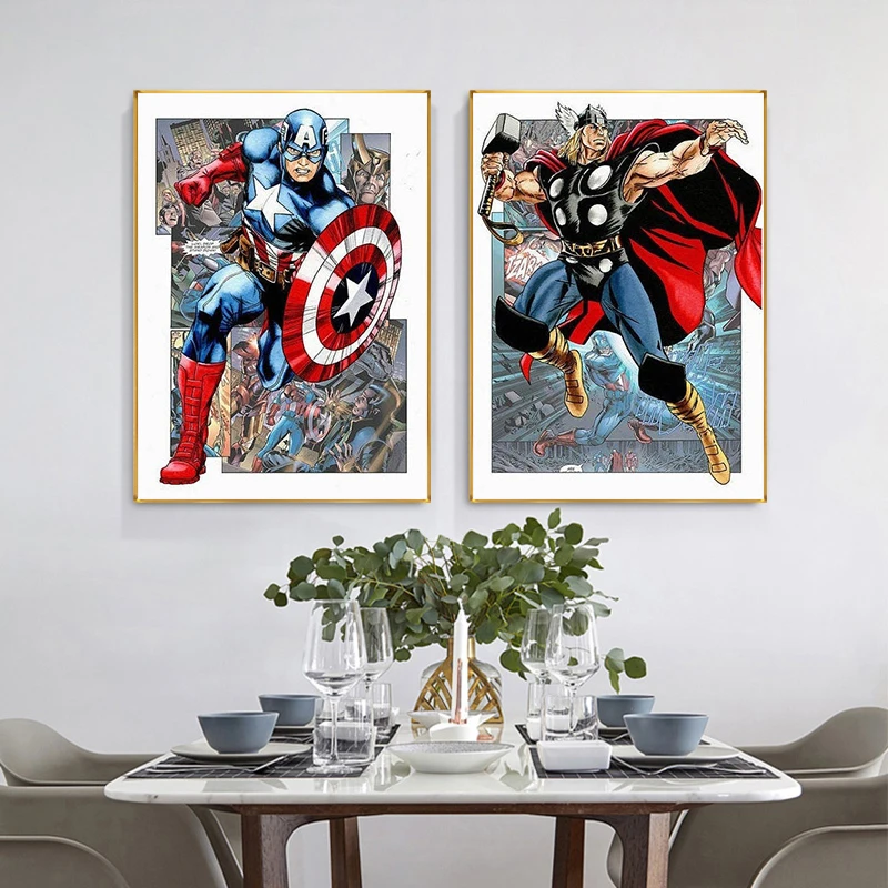Картина на холсте комиксов Marvel, Мстители, Капитан Америка, Железный человек, плакат, настенные картины для гостиной, искусство