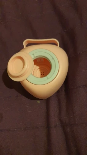 Всё соответствует описанию, маленькая, помещается на ладошке. Имеются 4 отверстия, достаточно крупные, шампунь вытекает быстро, мы даже не успели намылить собаку, вообщем, что то не получилось, и это не понравилось. Собаке больше понравилась на зуб. Будем приспосабливаться.