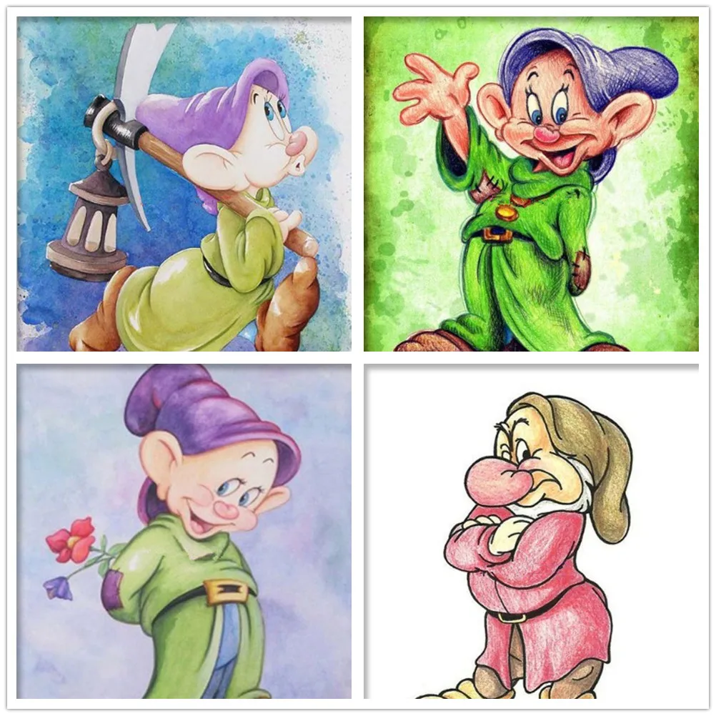 Алмазная живопись Disney 5D, картина Белоснежка и семь гномов, квадратнаяКруглая Мозаика, декоративная вышивка