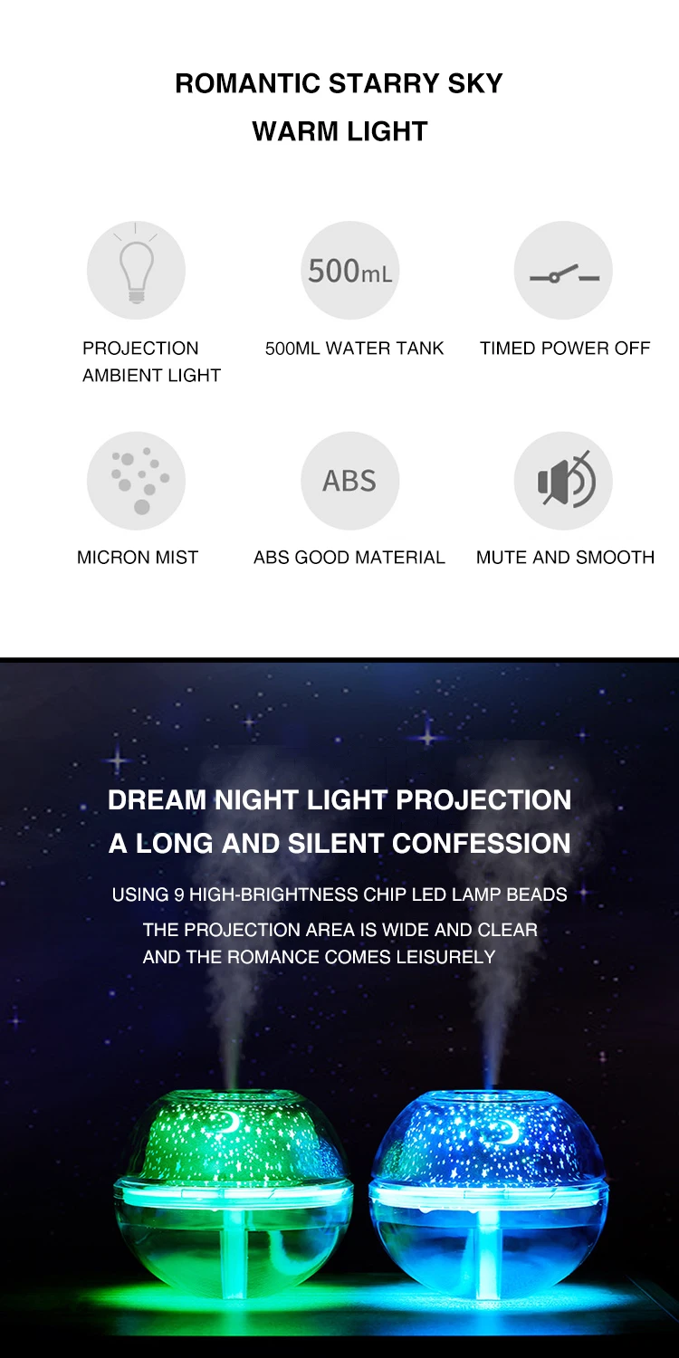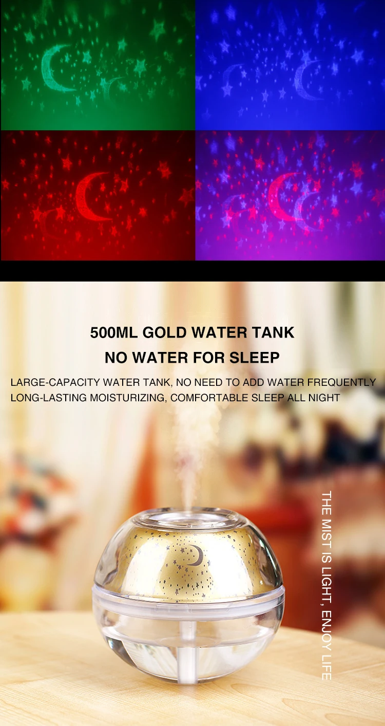 Проектор звездного неба, светодиодный светильник 500 мл, диффузор увлажнителя, USB, комнатный очиститель воздуха, проекционный цветной ночсветильник, атмосферная лампа