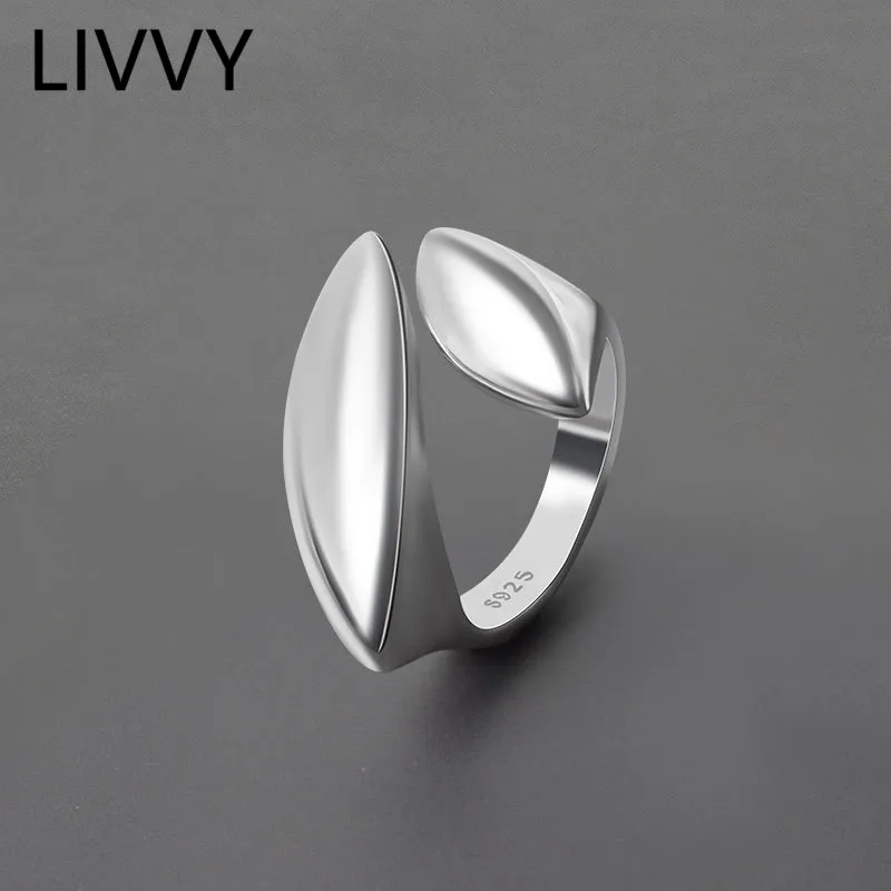 Ливи серебристый цвет открыт кольцо гладкой Drop личность регулируемый ювелирные изделия из драгоценных металлов, украшения для женщин, вечерние аксессуары для 2021 тенденция