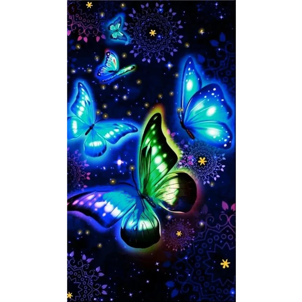 Флуоресцентные бабочки вышивка крестом 5D алмазная живопись ручной работы полная квадратная вышивка Стразы картины Алмазная вышивка