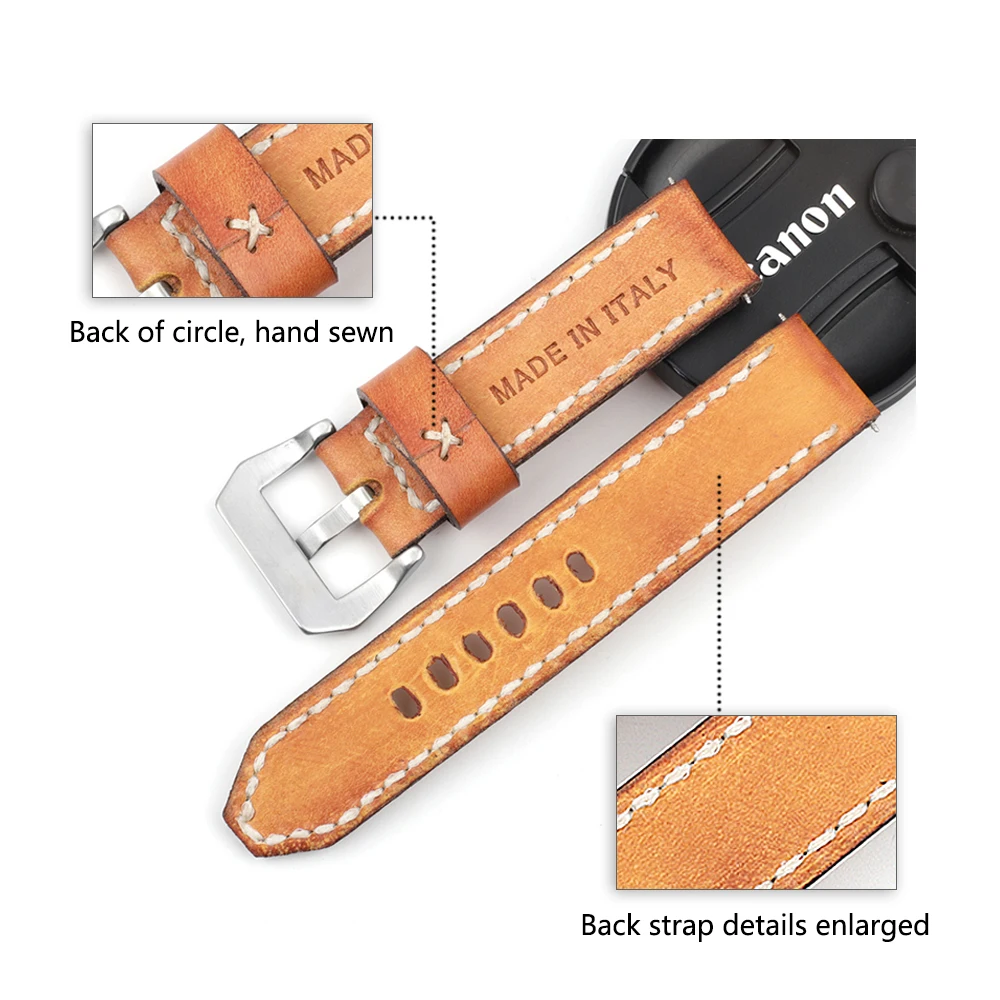 Винтажный кожаный ремешок для часов Ручной работы 18 мм 22 мм 24 мм, мужской ремешок для часов Panerai, заменяемый мужской браслет с Т-образным ремешком