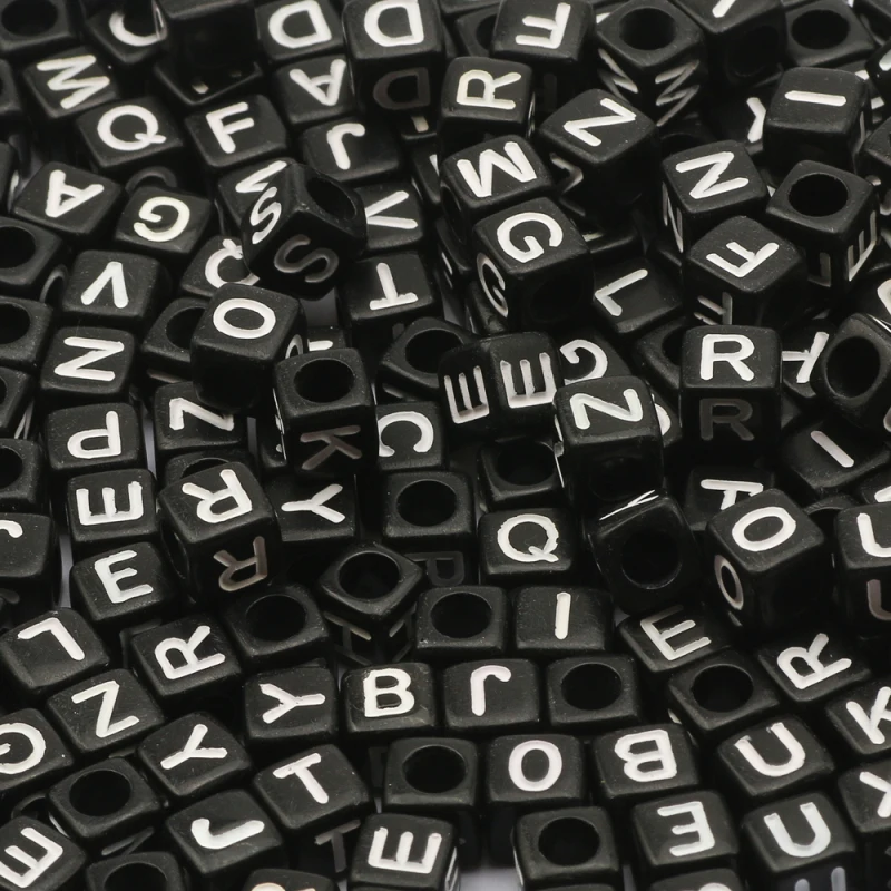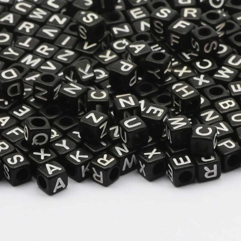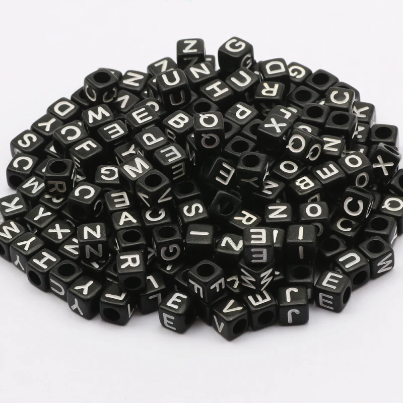 6*6 мм Разноцветные черного цвета с надписью и принтом Акриловые Бусы вставленные в квадратный алфавитный кубик Spacer Бусины для изготовления ювелирных изделий ручной работы Diy браслет аксессуары