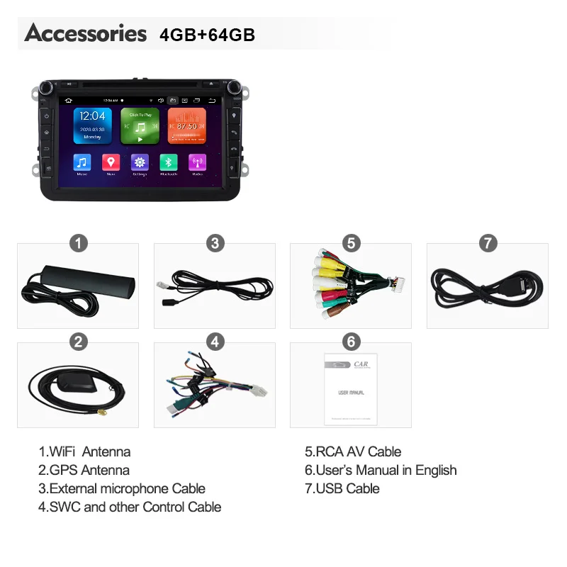 --- >>> Подходит для автомобилей VW/Skoda/Seat с 2005 года по настоящее время с RCD310,RCD315,RCD510,RNS510. Если ваш автомобиль 2016 + Rapid,2015 + Tiguan и другие новые модели после 2016 года, Вам могут понадобиться новые MQB VW Quadlock и CANBUS. Пожалуйста, сообщите нам, мы поможем вам проверить его и отправим вам правильный кабель Quadlock и CANBUS.