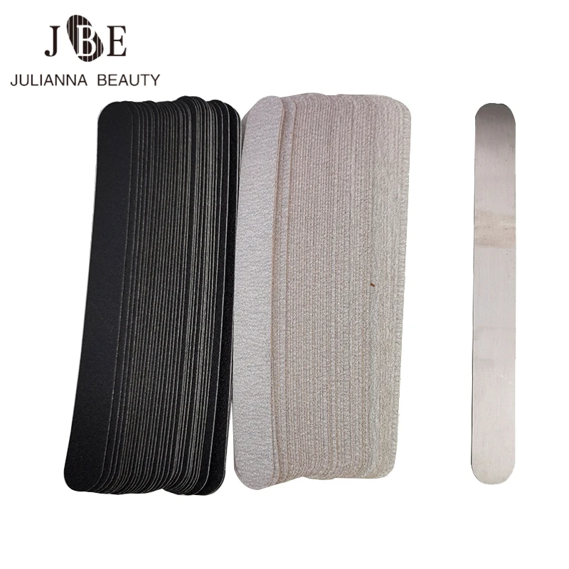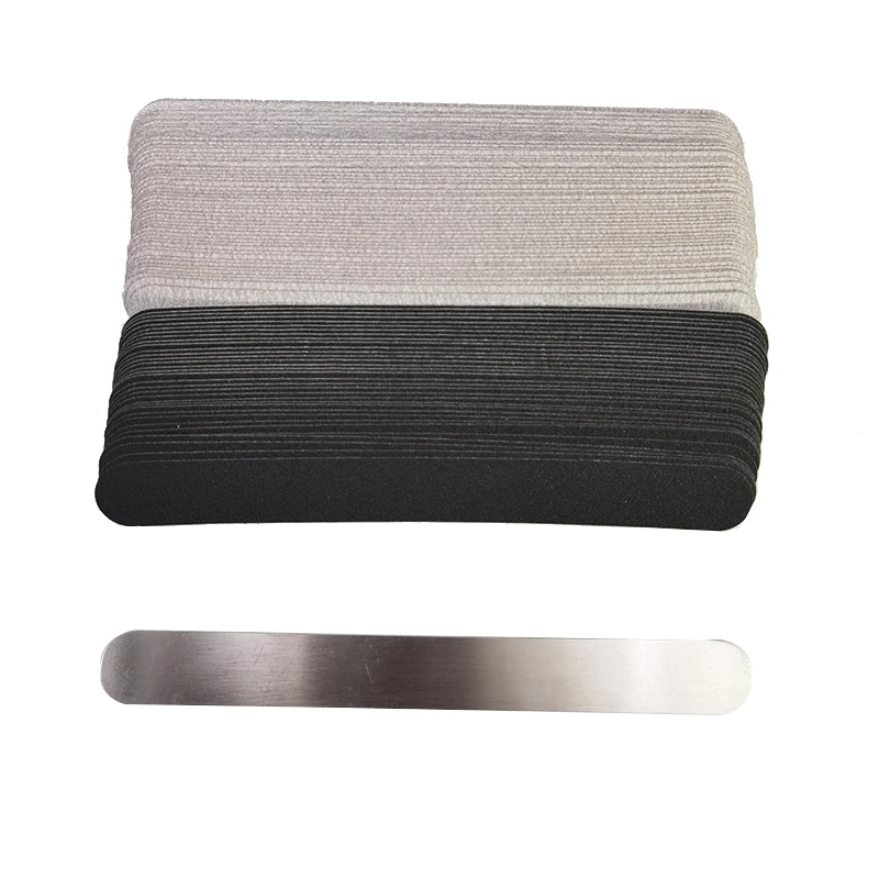ОписаниеМатериал: наждачная бумага, двусторонняя клейкая лентаРазмер (мм): 18*2 смПосылка: 1 металлический лом с 50 съемными прокладками, или всего 50 съемных подушекЗернистость: 80/100/180/240Цвет: серый/черныйФорма: прямой пилочка для ногтей