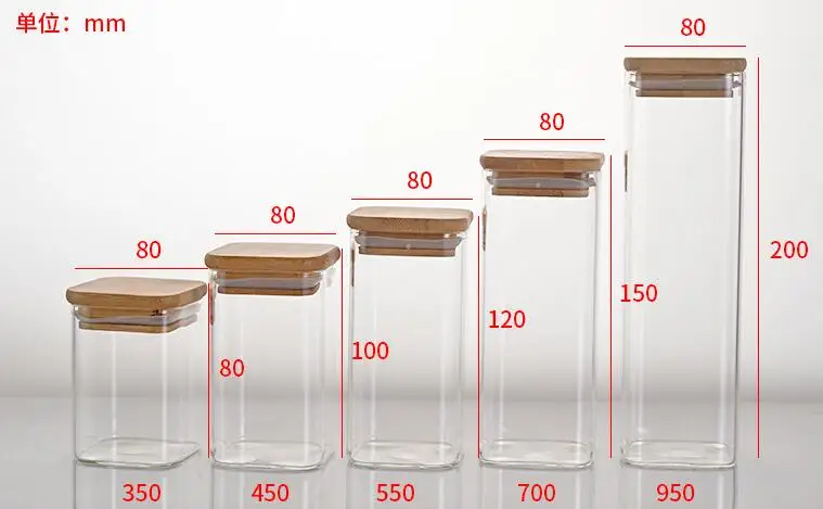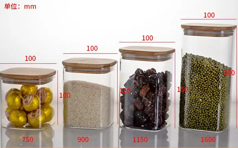 1 шт., Квадратный Контейнер для хранения пищевых продуктов, Бамбуковая крышка, Герметичный пищевой контейнер из боросиликатного стекла, Кухонный Контейнер для хранения зерна JO 1031