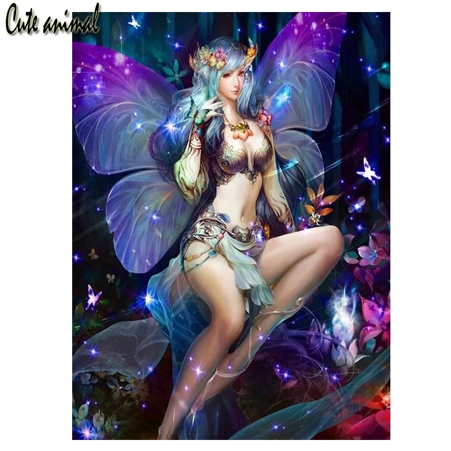 Стразы декоративная живопись Бабочка Фея девушка сделай сам 5d алмазная живопись квадратная дрель Круглая Мозаика вышивка эльфов