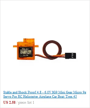 Спецификация:Детали RC и Accs: Серводвигатель аксессуарыТип транспортного средства: вертолетыМатериал: пластикПотребление напряжения: DC4.8-6VЦвет: синийРазмер изделия: 46х32х23мм