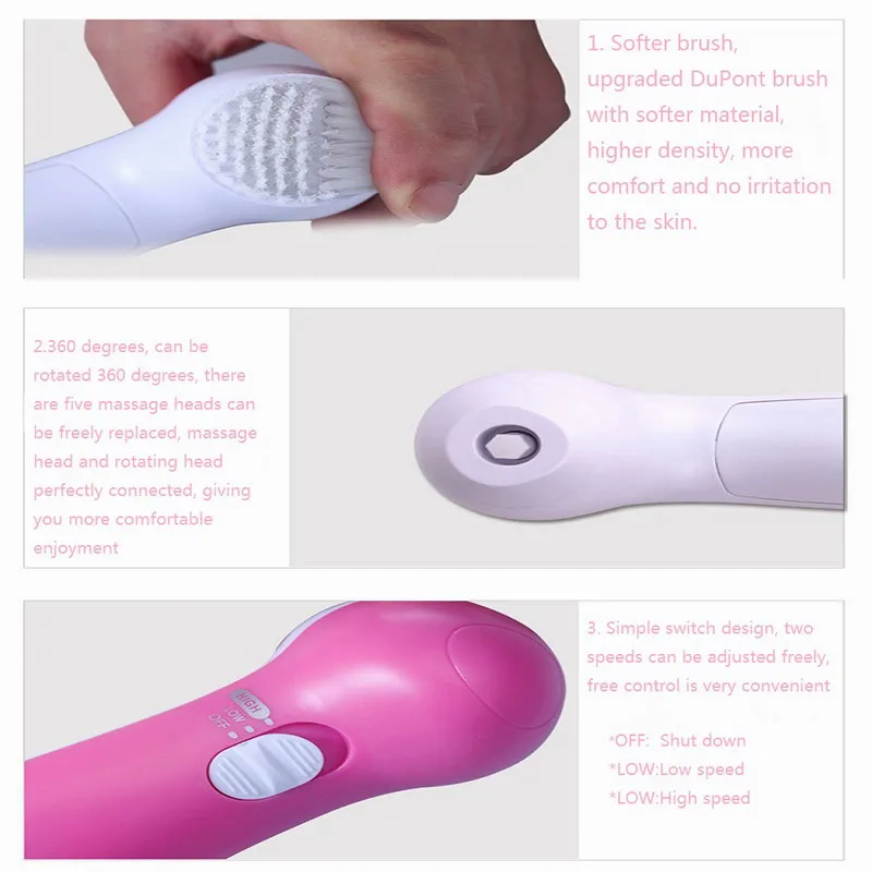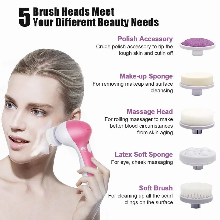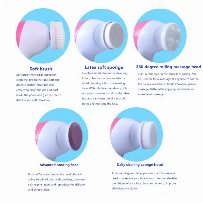 5 x насадок: мягкая щетка, массажер для прокатки, губка для макияжа, латексная губка-мягкая, сырая полировка аксессуар