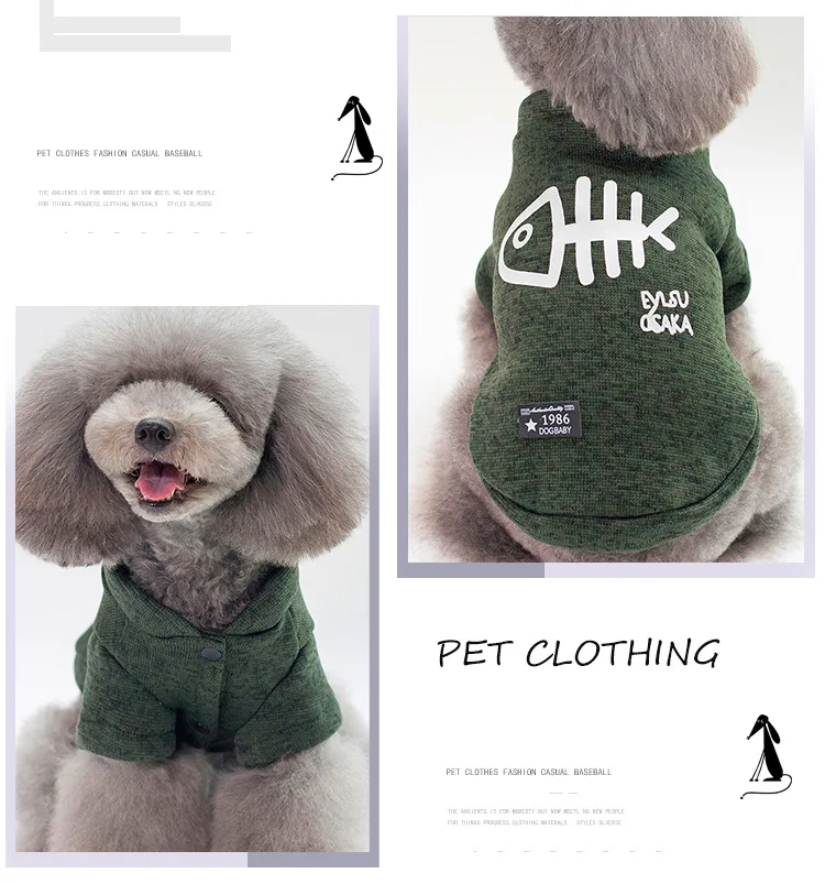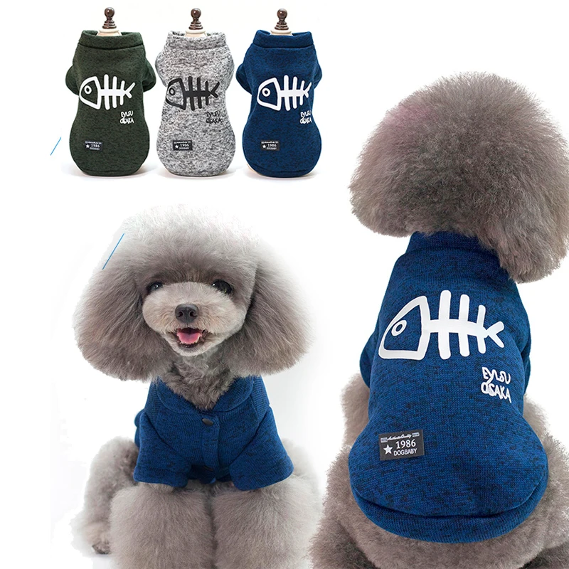 Собачий пуловер Одежда на осень и зиму, утепленная теплая Fishbone хлопковый свитер две ноги толстовки для маленьких и средних собак