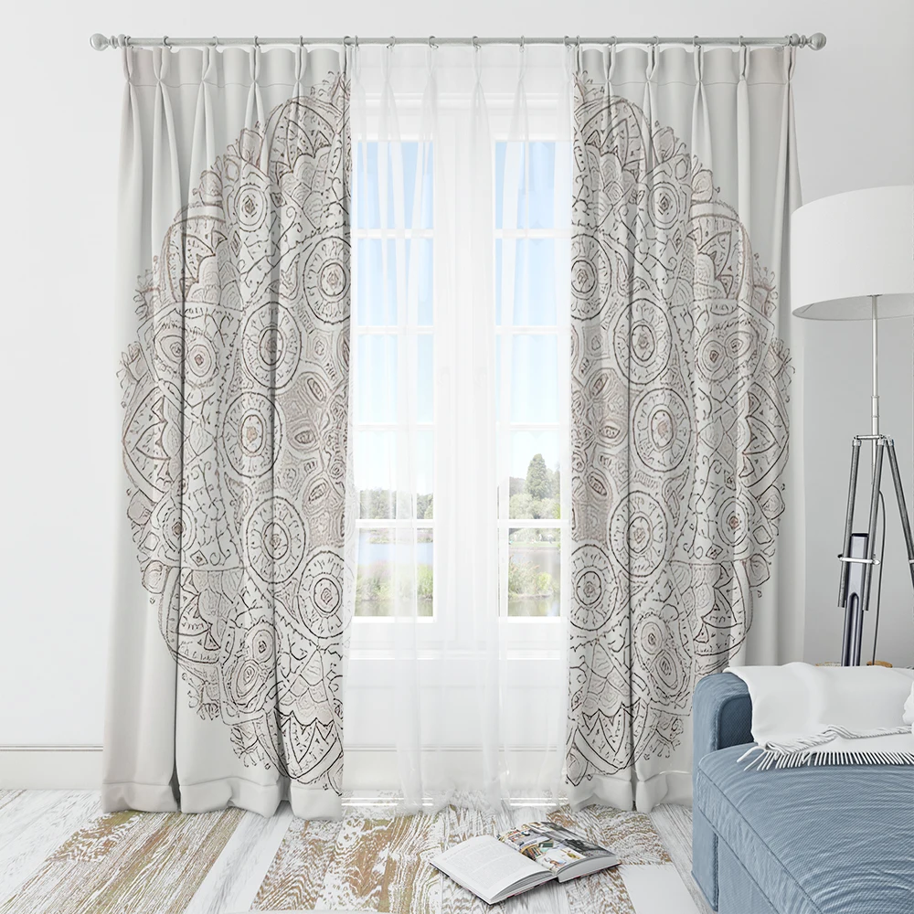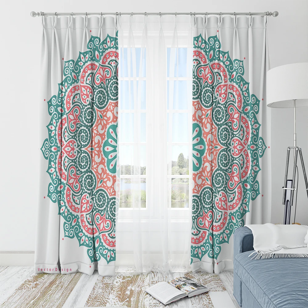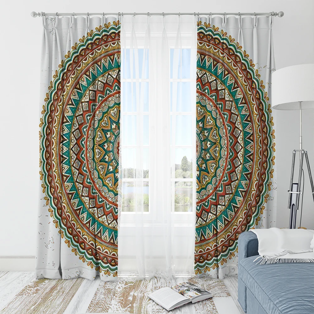Занавески с 3D-принтом мандала, в богемном восточном Европейском стиле, на заказ, для гостиной, спальни, плоская подошва, Декор, французские окна, 2 панели