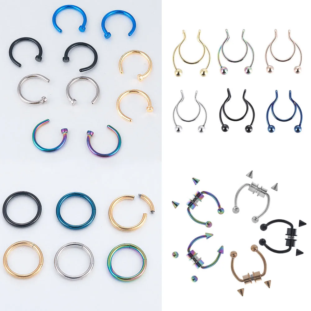 U-образное кольцо для носа с перемычкой, имитация пирсинга из нержавеющей стали, ювелирное изделие в стиле хип-хоп, рок, 12 шт.