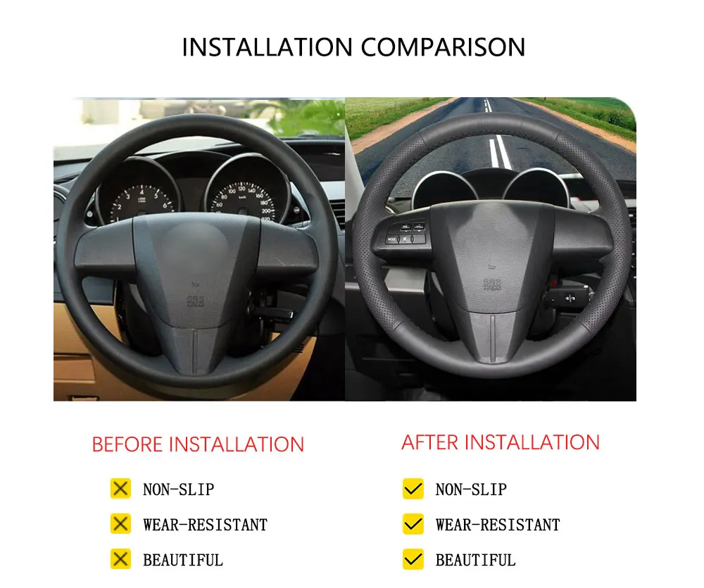 2.Чтобы лучше соответствовать вашему рулевому колесу,Пожалуйста, не снимайте оригинальный кожаный рульПеред установкой!