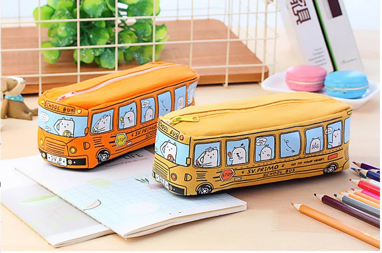 Холщовый чехол для карандашей с автобусом, 1 шт., творческая большая емкость, школьные принадлежности, сумка для карандашей для девочек, Канцелярия для мальчиков, кавайная сумка для хранения