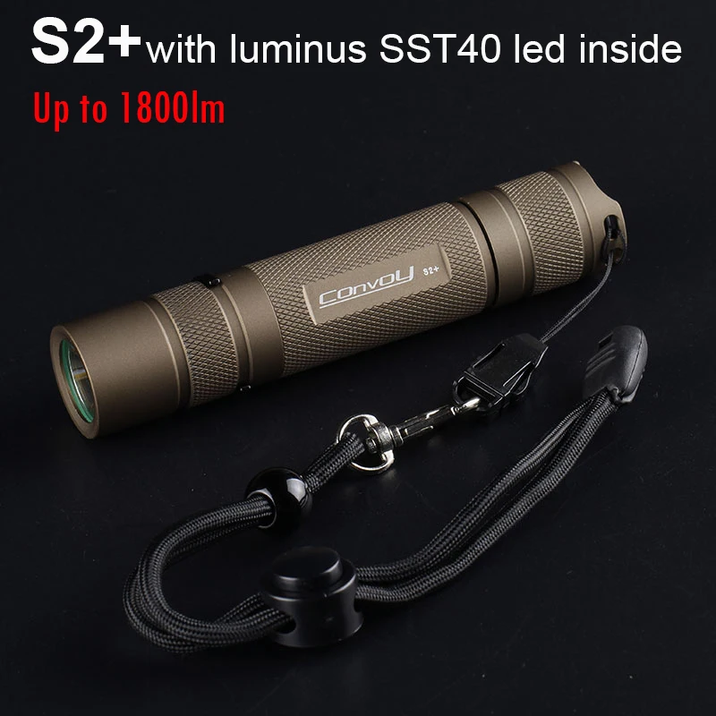 Светодиодный фонарик Convoy S2 Plus SST40, фонарь для пустыни и загара, мощный светильник для кемпинга, рыбалки, рабочего освещения, 18650