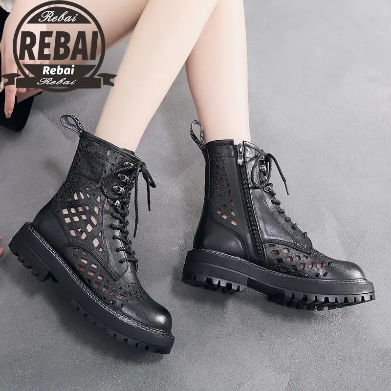 Женские ботильоны в стиле ретро, кожаные ботинки на платформе, рези...