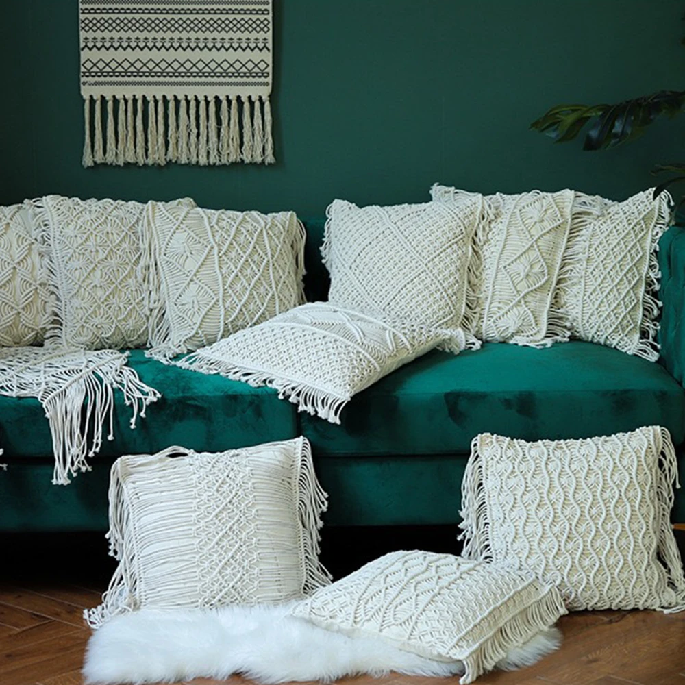 Наволочки в богемном стиле, плетеные вручную наволочки с геометриче...