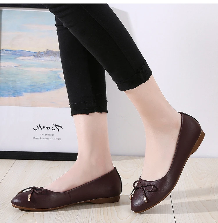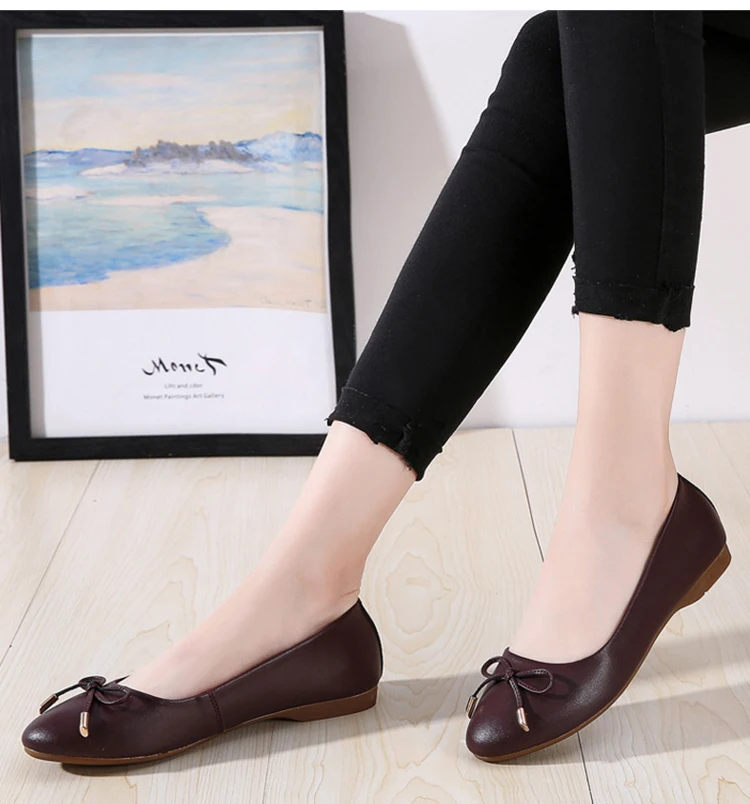 Женская обувь из натуральной кожи; Модные Винтажные женские лоферы; Обувь на плоской подошве с милым бантом; Женские балетки; Удобная обувь для тренировок; Большие размеры