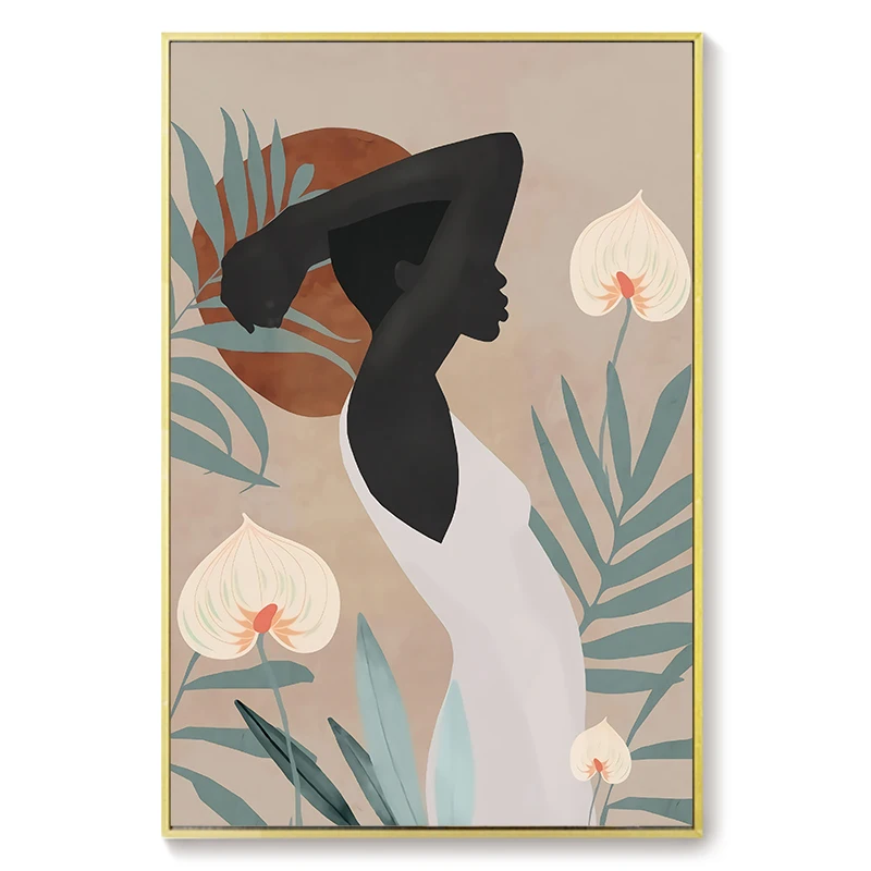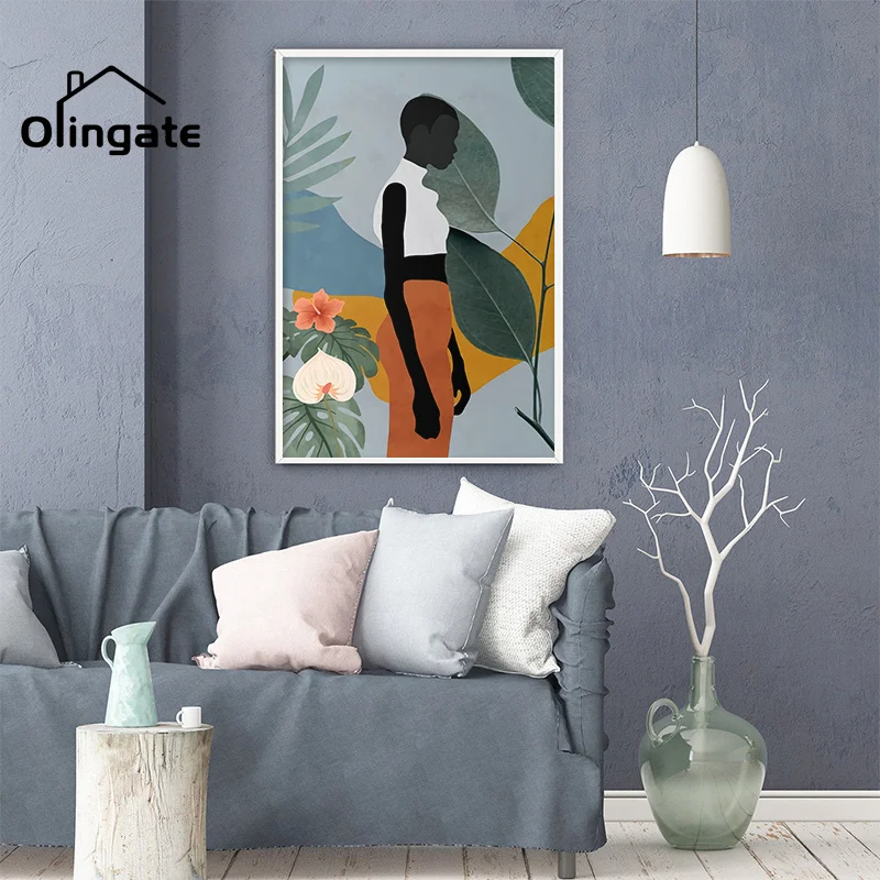Абстрактные плакаты и принты черной женщины, растения, Геометрическ...