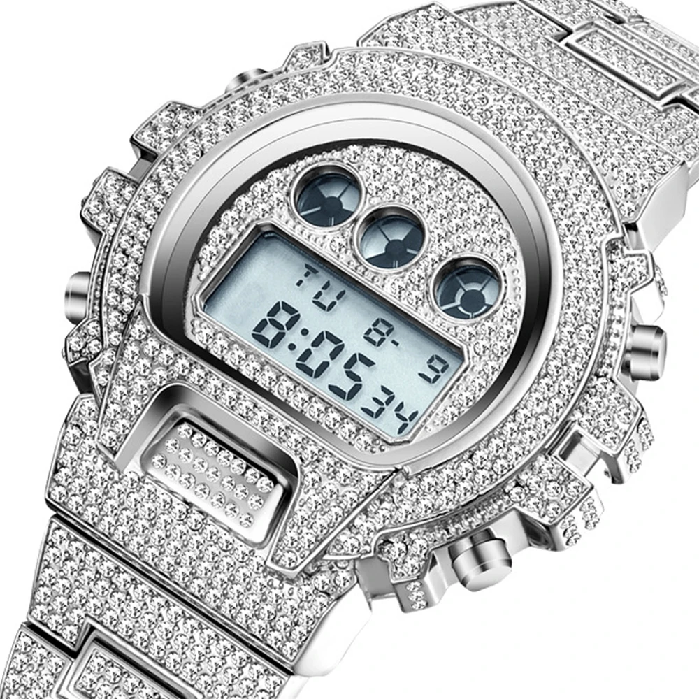 Часы наручные мужские цифровые со стразами, роскошные светодиодные ...