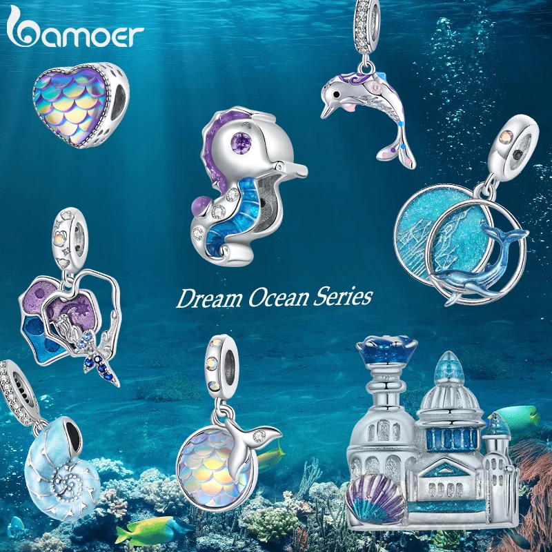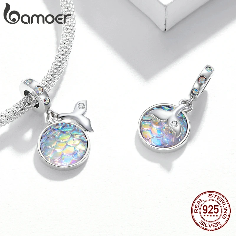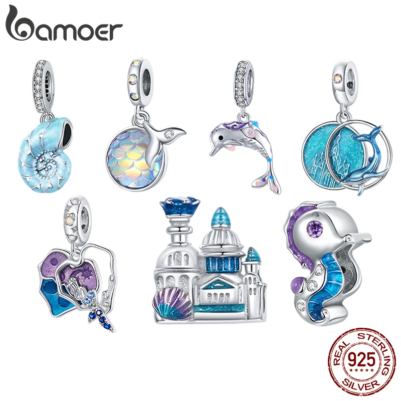 Шарм-подвеска bamoer из серебра 925 пробы, с изображением морского замка, морского хвоста