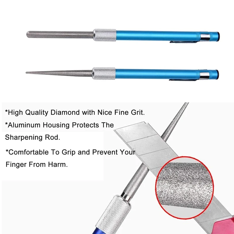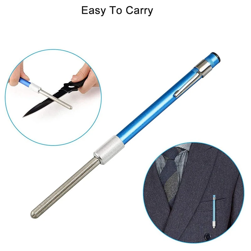 [Высокое качество] Эта ручка для заточки ножей изготовлена из высококачественного алмаза, который достаточно прочен для затачивания ножа. Хорошая мелкая зернистость облегчает работу. Алюминиевый корпус защищает заточенный стержень и защищает ваш палец от вреда.[Выдвижной и съемный] этот маленький стержень для заточки 3 в 1 легко носить с собой, вы можете положить его в сумку или коробку для снастей.[Специальный дизайн] точилка для ножей 3 в 1-это удобное устройство в форме ручки, которое используется для заточки практически любых типов тупых ножей. Заточка удилища имеет специальный паз для рыболовных крючков, коническая часть шлифовального стержня для серраций и крючков.[Экономьте ваше время] Этот тусклый нож-Отличное дополнение к вашей кухне, отличный Алмазный острый стержень, чтобы сохранить острый нож. Помогает сэкономить время и энергию, быстро затачивая. Geat для полукруглой и плоской поверхности заточки стали для стандартных кромок ножей.[Широкое применение] Алмазная ручка для заточки предназначена для всех целей; Вы можете использовать ее для затачивания внешних инструментов, таких как рыболовные крючки и охотничьи ножи для выживания. Внутренние инструменты, такие как кухонные ножи, ножи шеф-повара и ножницы.Цвет: синий + серебристыйМатериал: бриллиантРазмер: 13 смПосылка:1 x Алмазная точилка для ножейТолько вышеуказанная посылка, другие товары не включены.Примечание: светильник и различные дисплеи могут привести к тому, что цвет товара на картинке немного отличается от реального. Допускается погрешность в измерениях +/- 1-3 см.