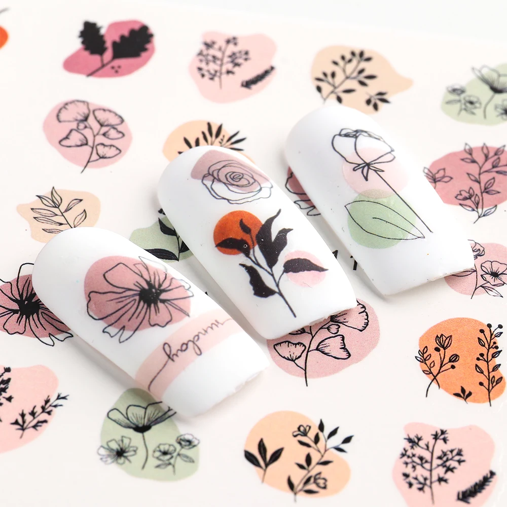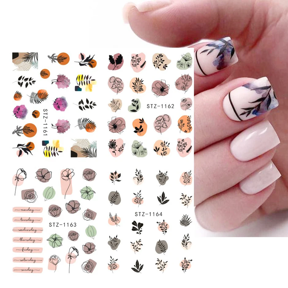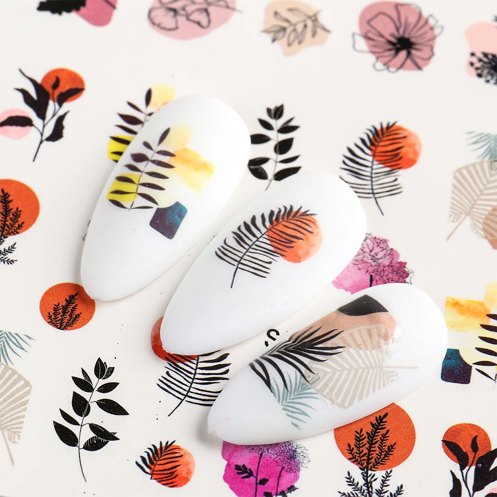 Летние наклейки для ногтей, наклейки для тату, листьев, цветов с градиентом, простые водные Слайдеры для дизайна ногтей, украшения для маникюра для женщин NTI01-19, 4 шт.