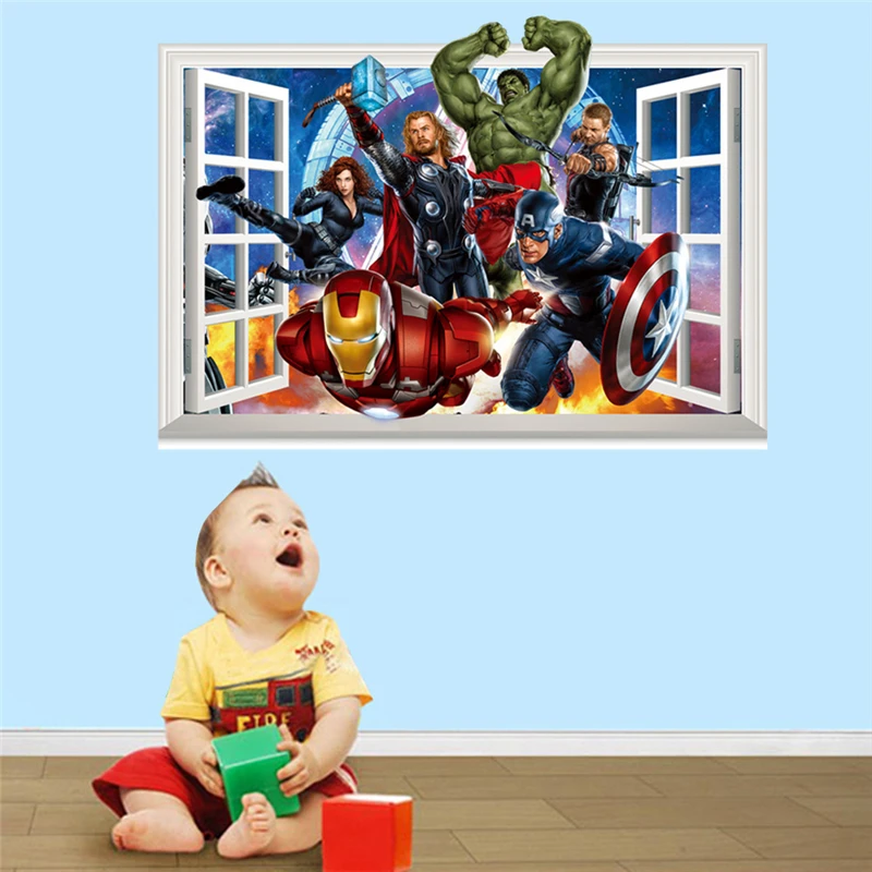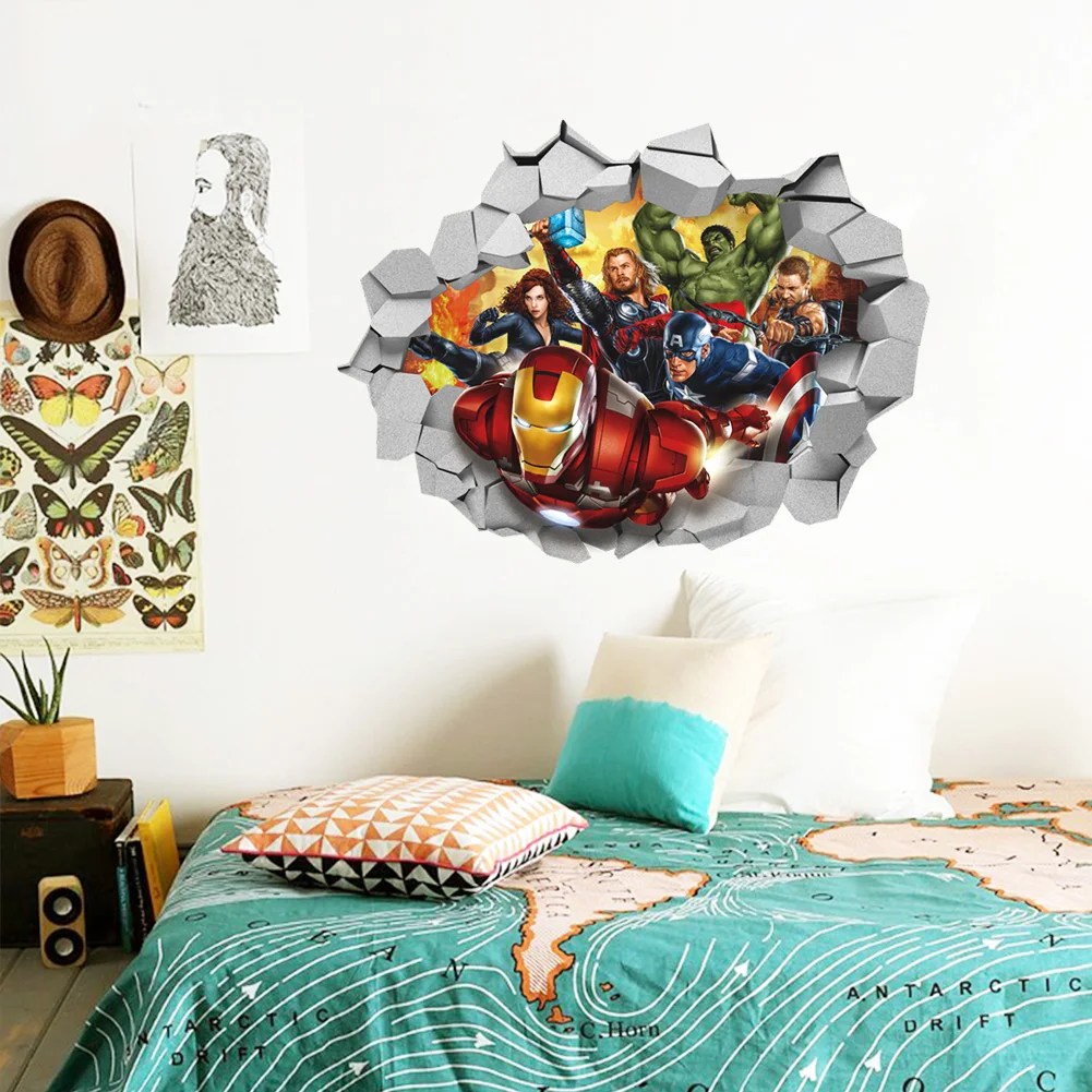 3D Дисней Мстители разбитая стена наклейки на окна стены для детской комнаты домашний Декор ПВХ наклейки Diy Мальчики Фреска подарок