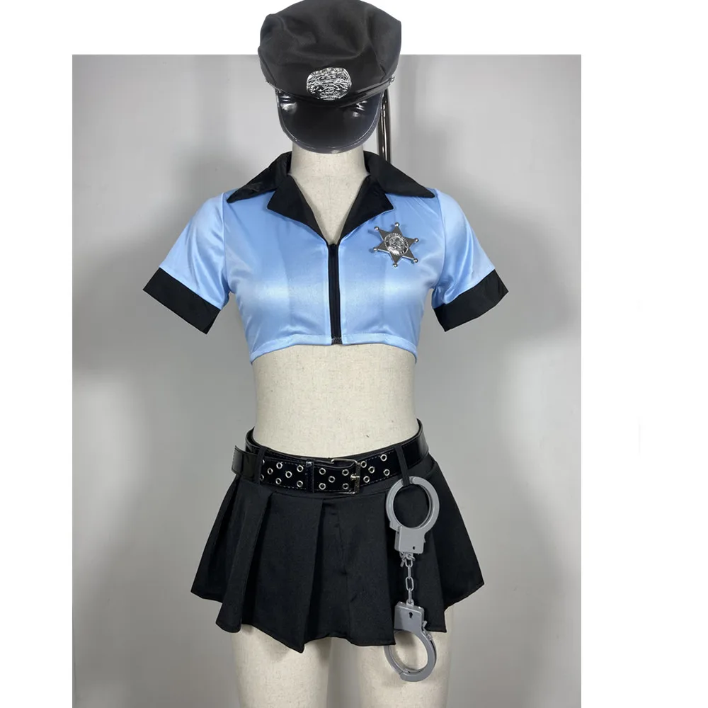 6 шт.компл. костюм сексуального полицейского офицера, черная полицейская Униформа на молнии, косплей для взрослых женщин на Хэллоуин, маскарадное платье