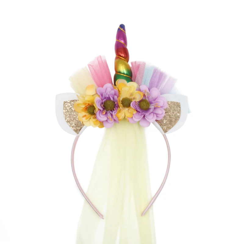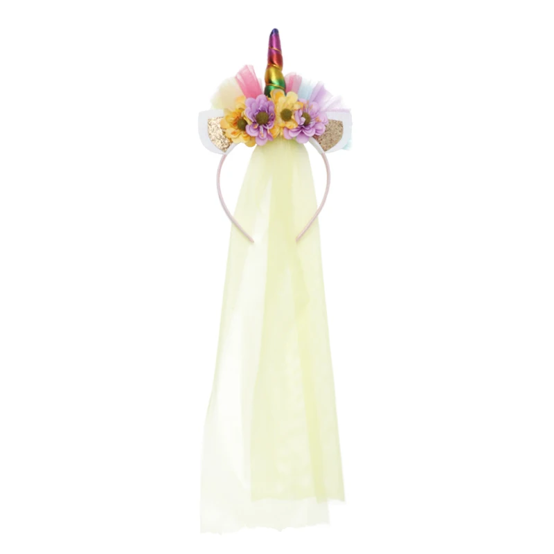 Мисс милый Единорог лента для волос с блестками с украшением в виде кошачьих ушек повязка на голову с 40 см длинные фатиновые вечерние Единорог женские аксессуары для волос для девочек Единорог повязка на голову