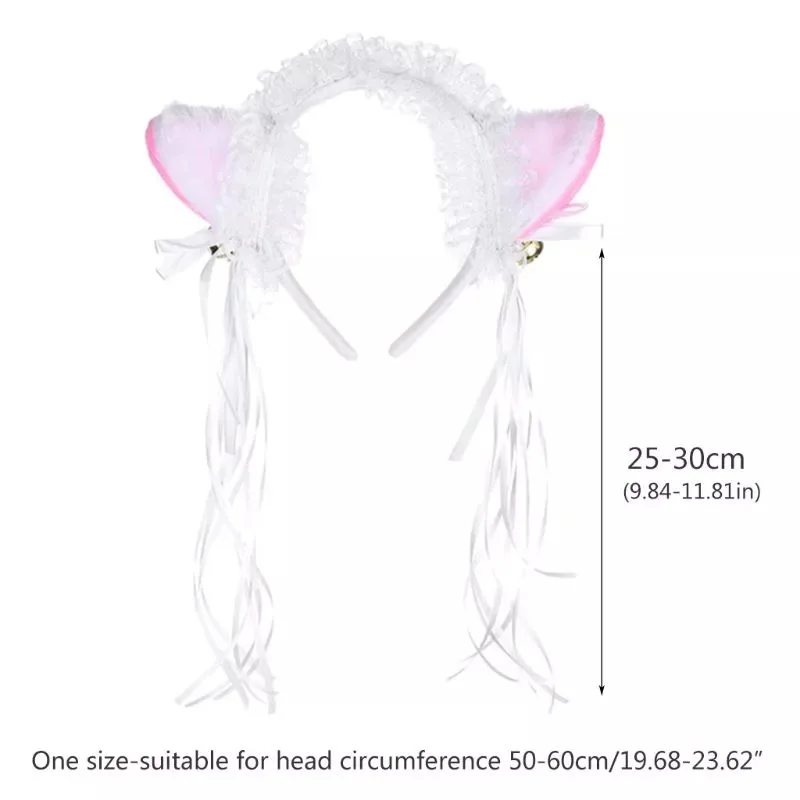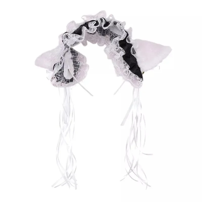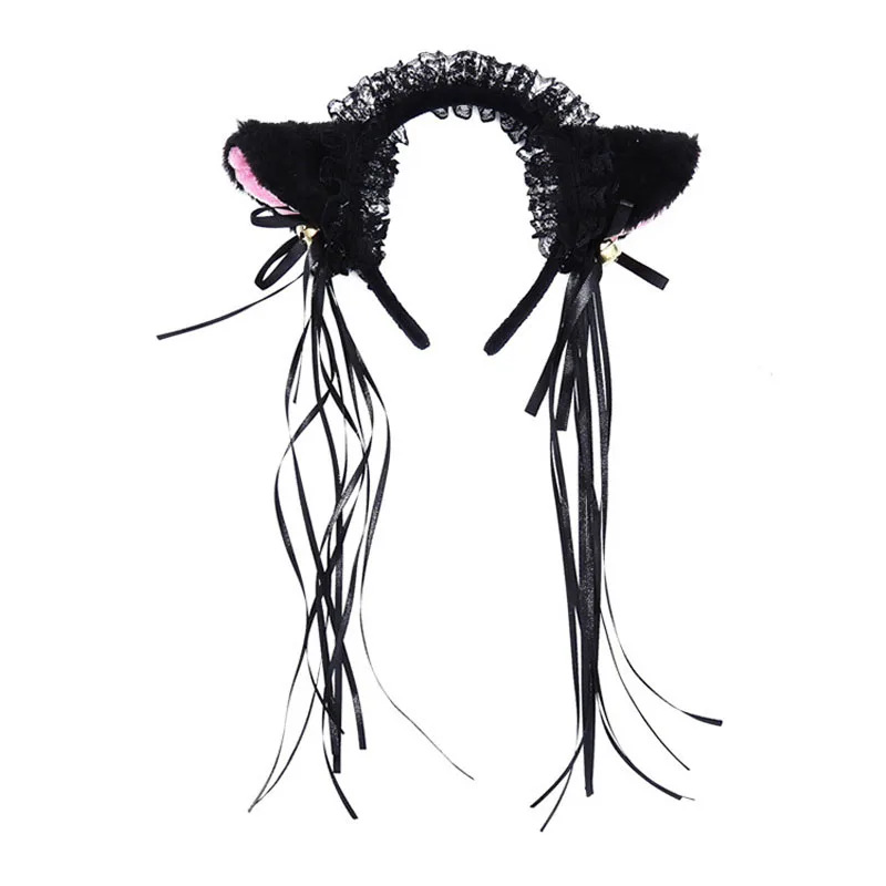 Женская Кружевная повязка на голову с оборками, плюшевый колокольчик с лентой с кошачьими ушками, кружевной головной убор горничной лолиты, аксессуары для волос для косплея, 23GE