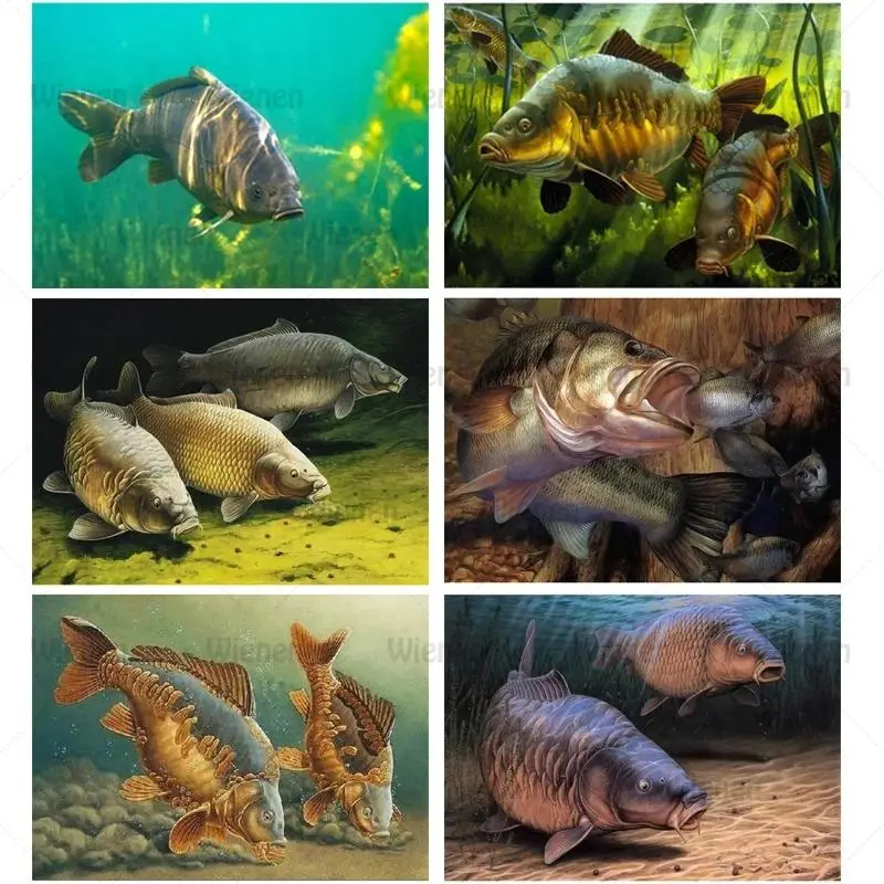 Алмазная живопись, большой карп, рыбалка 5D, сделай сам, полное квадратноеКруглое искусство, алмазная вышивка крестиком, 3D домашняя искусство