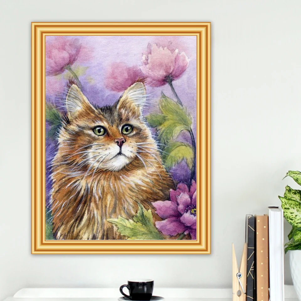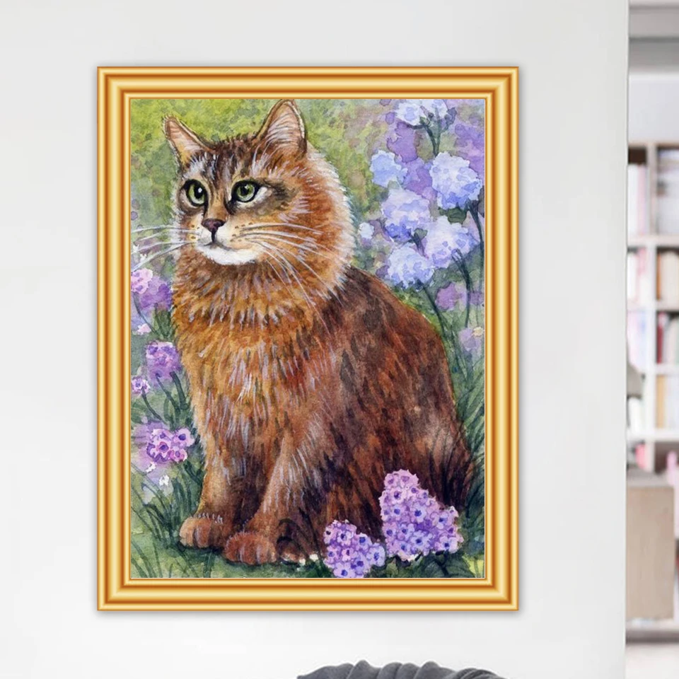 Картина 5D "сделай сам", алмазная живопись, кошка, цветы, Набор для вышивки крестиком, мозаика, картина для стразы, Декор для дома