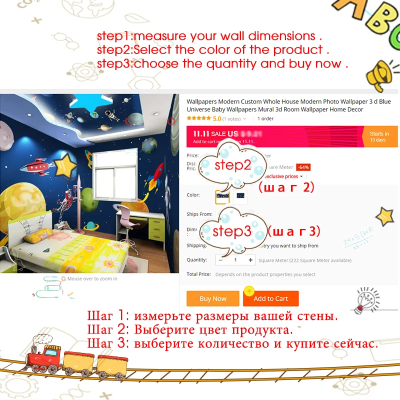 Если вы не предоставили нам свой размер стены в течение 24 часов, мы будем настроить обои по умолчанию.