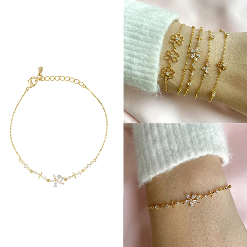 Женский браслет серебряного цвета, золотая цепочка с фианитами