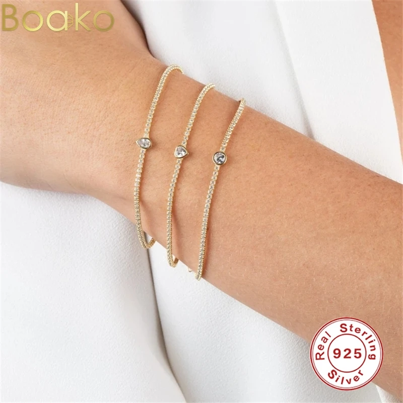 Женский браслет в стиле минимализма BOAKO, браслет из стерлингового серебра 925 пробы с цирконием и бриллиантами, очаровательные браслеты, тонкие ювелирные браслеты, подарки