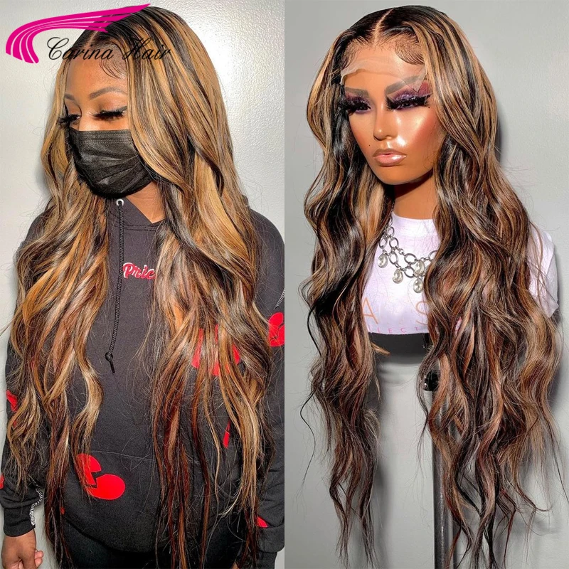 Хайлайтер 13X4 парики из человеческих волос на сетке спереди, 180% ...