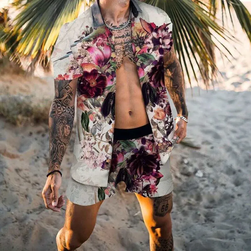 Мужской комплект из 2 предметов, гавайская рубашка + пляжные шорты,...
