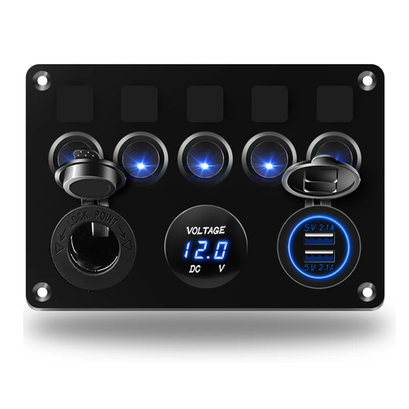 Держатель для блока предохранителей, 12 каналов, 5 клавиш, светодиодный переключатель, цифровой вольтметр, двойной USB-порт, 12 В, аксессуары для автомобиля, морской лодки