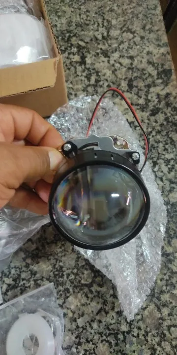 Слева без кожуха: 2x2,5 дюймовых Биксеноновые линзы прожекторного типа (левая рука водителя) + 1 x набор H4 и H7 гнездо кольца + 1 x набор Установка крепеж