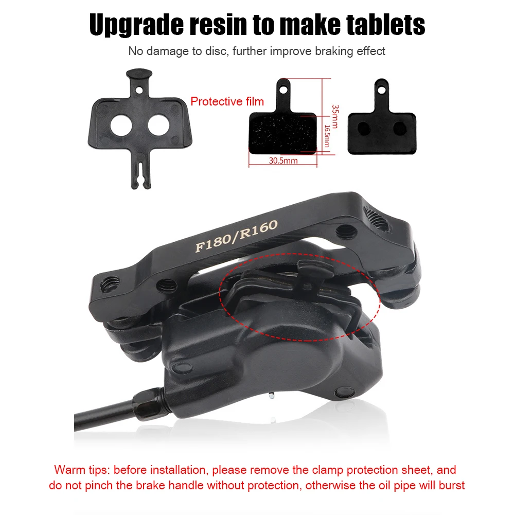 Дисковый тормоз горного велосипеда набор MTB Гидравлический дисковый тормоз с 160 мм тормозной ротор + БолтыХарактеристика:Принцип двойного поршневого привода, обе стороны привода фрикционных дисков в то же время, и тормоза возвращаются автоматически.Одинаковая сила с обеих сторон, синхронное трение, стабильное торможение, сильное торможение.Трехмерная конструкция масляного цилиндра, вертикальный цилиндр может обеспечить более крупный поршень на более коротком расстоянии и может легко тормозить одним нажатием.Резиновые Тормозные колодки не повреждают тормозной ротор и еще больше усиливают тормозной эффект.Изготовлен из прочного и прочного высокопрочного алюминиевого сплава, быстро тормозит и сбрасывает во времени.Эргономичный трехпальцевый тормозной рычаг, легко управлять тормозом, сильная Тормозная сила.Спецификация:Материал: Высокопрочный алюминиевый сплавЦвет: черныйВес: тормозной ротор: 100 г; Дисковый тормоз: 320 гКатегория: двухсторонний тормоз, гидравлический дисковый тормозМасляная трубка: передняя трубка длиной 800 мм/31,5 дюйма, задняя трубка длиной 1400 мм/55,1 дюймаПрименение: 160 мм/6,30 "6-болт ротораЦилиндр: трёхмерный цилиндр (всего лишь щепотка для торможения)Размер установки: Стандартный b-столб 51 мм/стандартный a-столб 75 ммПримечание:Возможны незначительные отклонения в размере из-за ручного измерения, различных методов измерения и инструментов.Изображение может не отражать фактический цвет изделия из-за различного фотографирования светильник, угол и дисплей монитора.