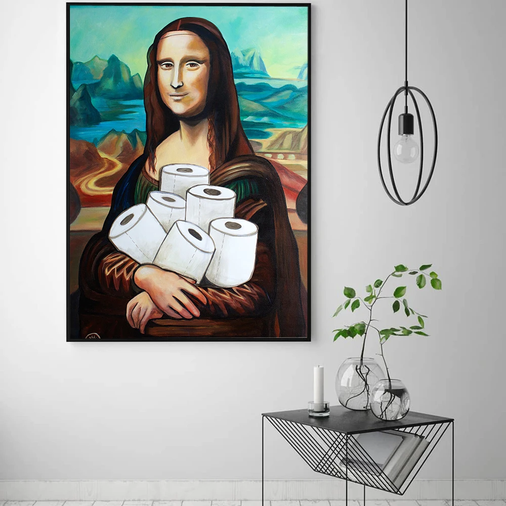 Настенная Картина на холсте с забавным принтом для туалета, настенный плакат с Моной Лизой для ванной комнаты, украшение для дома, Скандинавская Модульная картина для гостиной