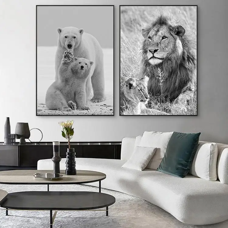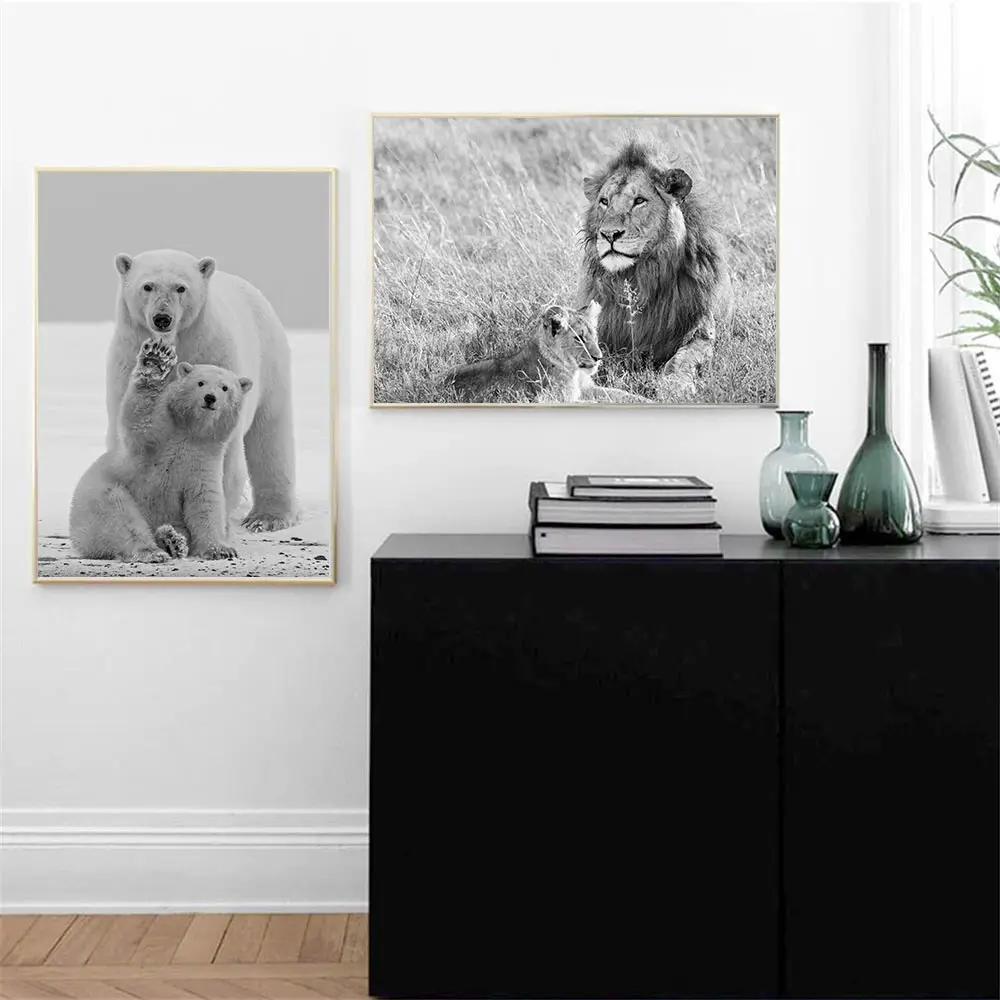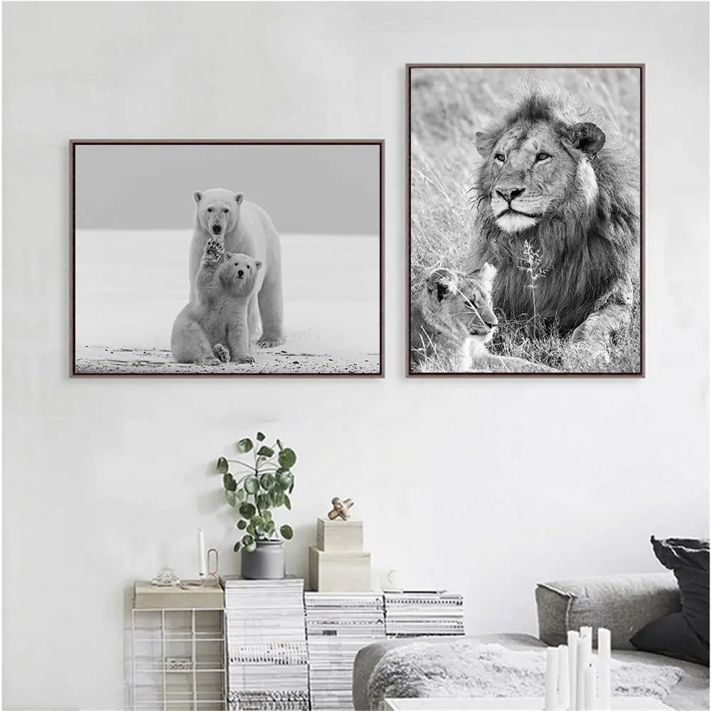 Nordic Лев полярный медведь настенные художественные плакаты и принты с животными Одежда для родителей и ребенка живопись холст Современная живопись маслом картины Гостиная домашний декор