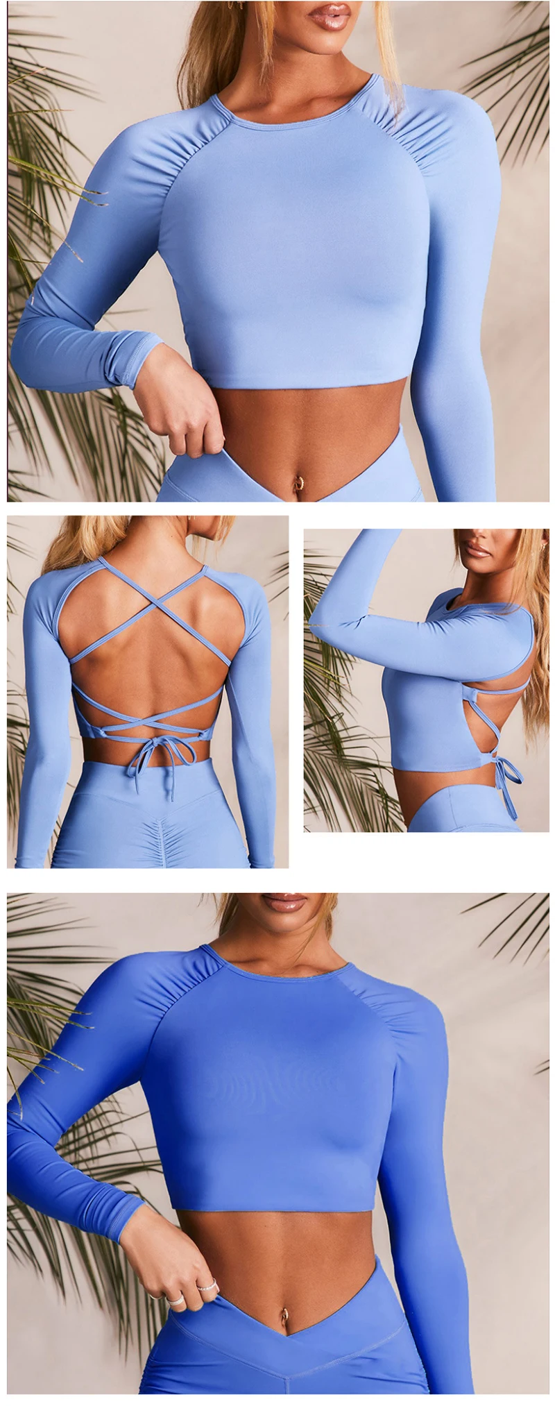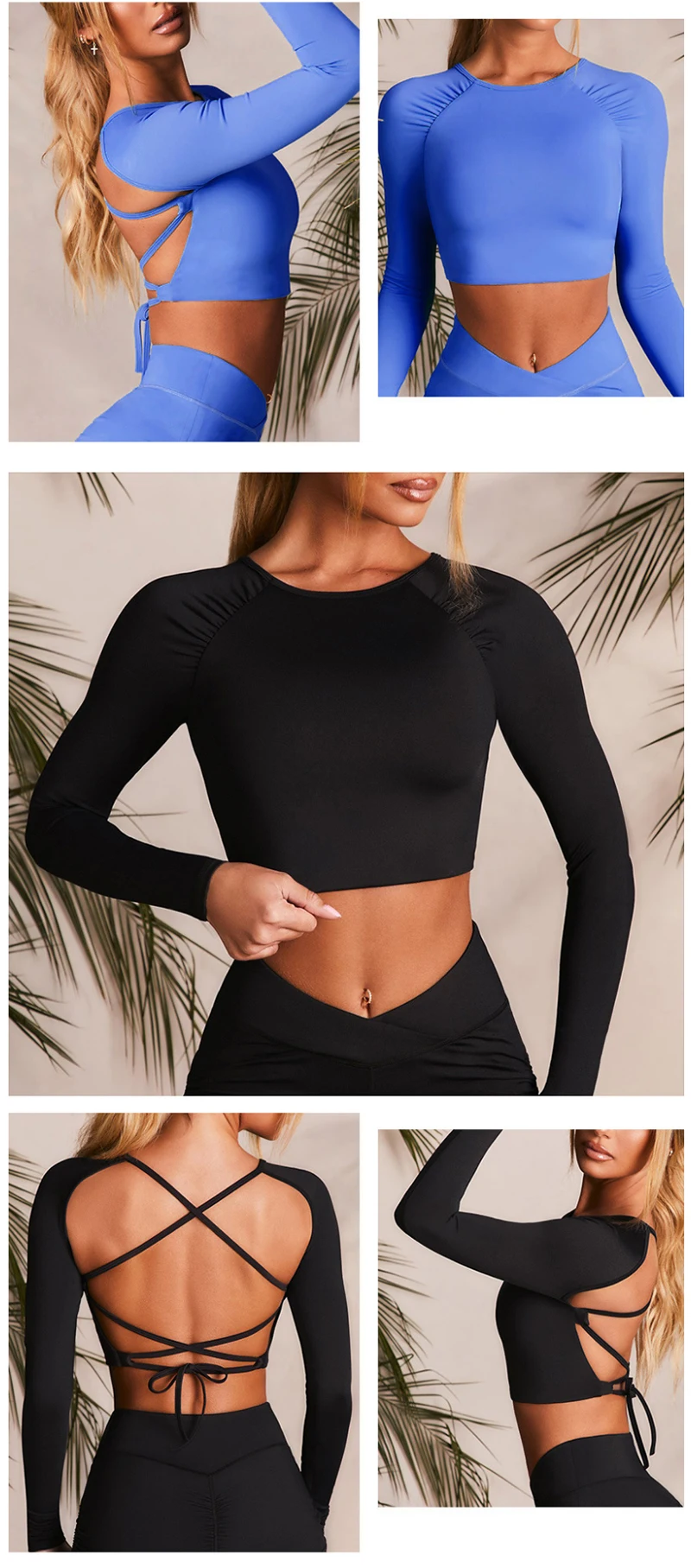 Бюстгальтер женский спортивный с длинным рукавом, пикантная блузка с чашками пуш-ап, укороченная одежда для йоги, топ для бега, тренажерного зала, рубашка с открытой спиной