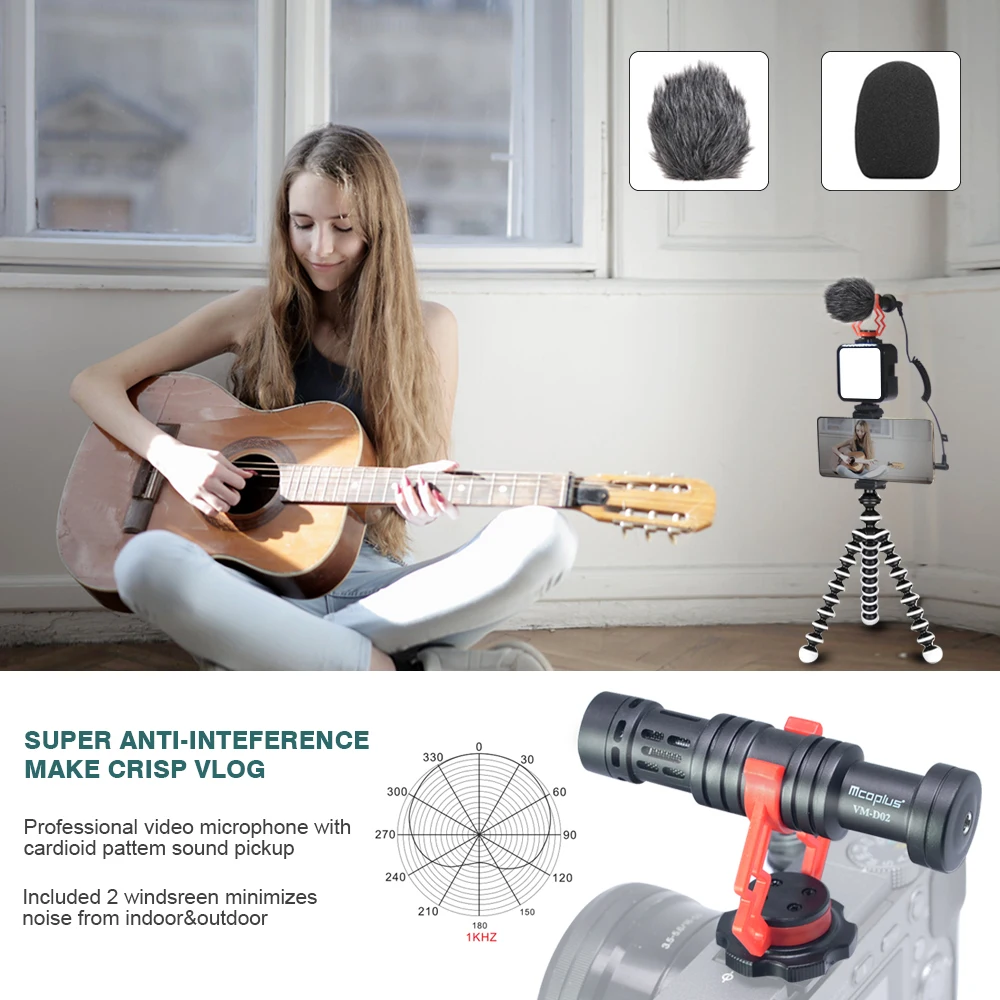 Кардиоидный конденсаторный микрофон, который обеспечивает более низкий уровень шума и высокую чувствительность звука на ваших смартфонах, планшетах, зеркалах, потребительских видеокамерах, ПК и многого другого.