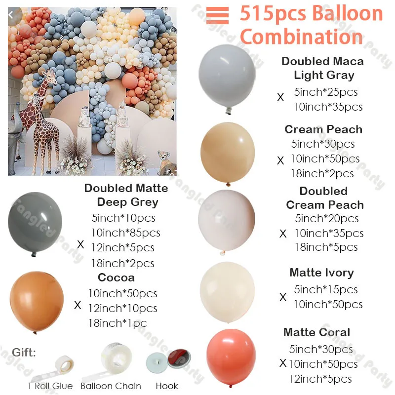 515 шт. двойные кремовые персиковые какао воздушные шары гирлянда матовые коралловые серые цвета слоновой кости Детские душевые шары Арка пол раскрывает день рождения набор для вечеринки