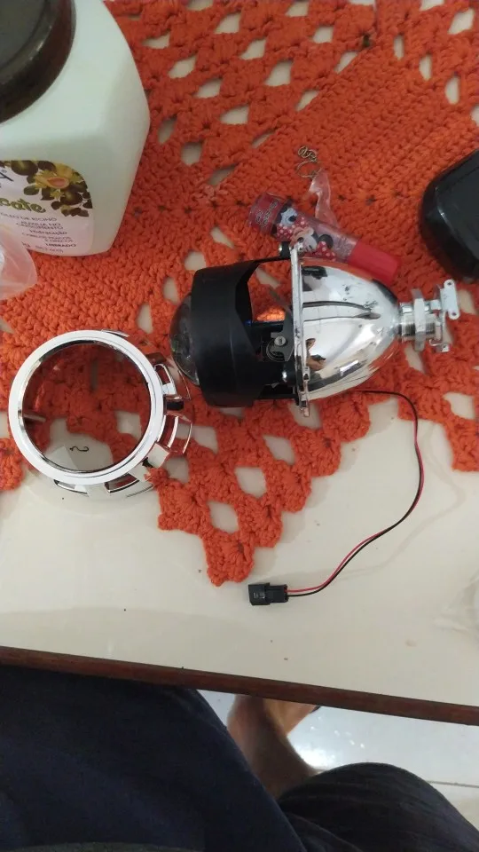 Слева без кожуха: 2x2,5 дюймовых Биксеноновые линзы прожекторного типа (левая рука водителя) + 1 x набор H4 и H7 гнездо кольца + 1 x набор Установка крепеж